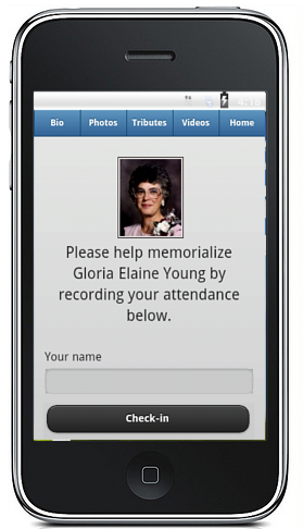Any attendee who scans the barcode with their smart phone to access the mobile obituary will be asked to check-in by entering their name.