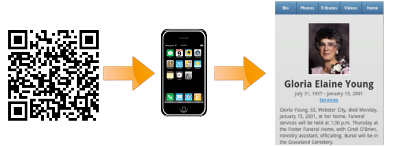 The magic happens courtesy of a 2-D bar-code displayed on each Remembrance Code; when scanned with any smart phone, it automatically opens the online memorial within the funeral home's website. Behind the scenes, an algorithm is used to ensure the online memorial is displayed forever, even if the funeral home's website changes!